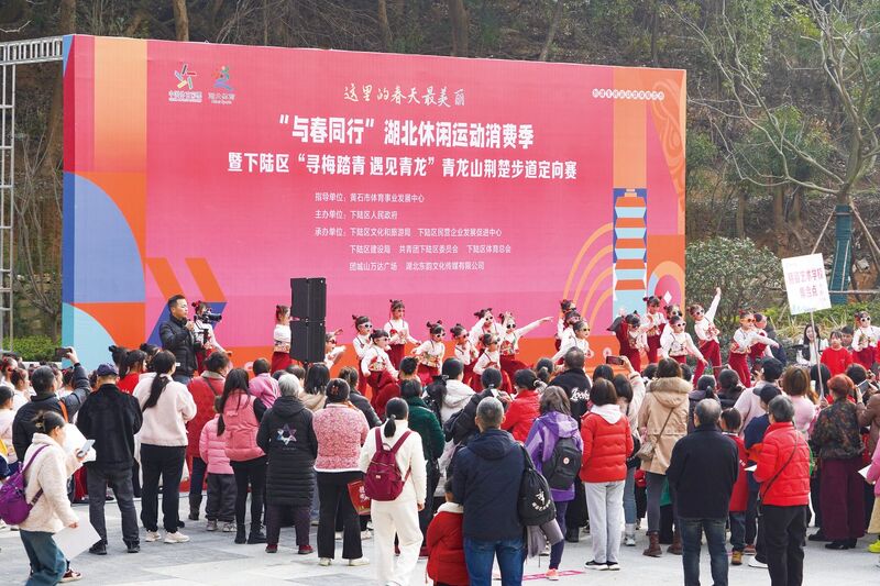 在提前谋划和精心筹备下,黄石作为2025年“与春同行”湖北省休闲运动消费季主会场,设置了“争春、闹春、寻春、享春”四大板块,全方位覆盖赛事活动、休闲运动、非遗展示、消费优惠政策等多个维度,全面宣推体育融合项目,提供“赛、食、赏、购、游”一条龙服务,打造出了一场休闲运动消费季盛宴。