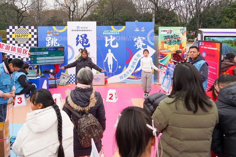 数字化赋能也是本次消费季活动的另一大亮点。2月12日在黄石市人民广场上举行的体育庙会活动现场,设置了ai骑行、跳舞等科技体验项目,通过现代科技手段提升了传统体育活动的互动性和趣味性。“我们为这次体育庙会带来了磁控象棋和ai骑行两套设备,为市民提供一个亲身体验智能体育魅力的机会,深入了解智能体育的前沿发展。”武汉昊康体育产业发展有限公司负责人介绍。