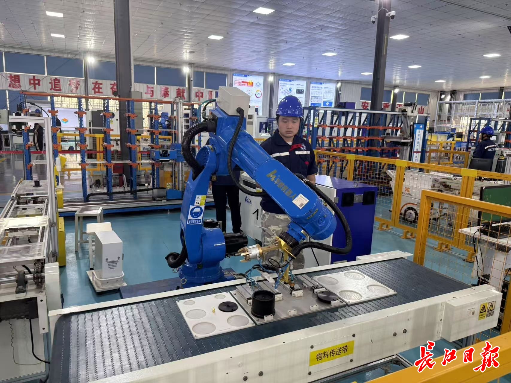 武汉软件工程职业学院学生在智能制造开放型产教融合实践中心。记者陈晓彤 摄