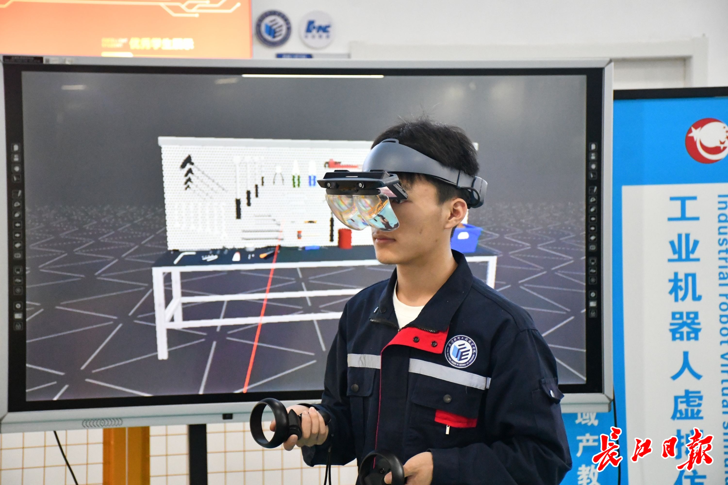 武汉软件工程职业学院学生向嘉宾展示工业机器人虚拟仿真技术。记者陈晓彤 摄