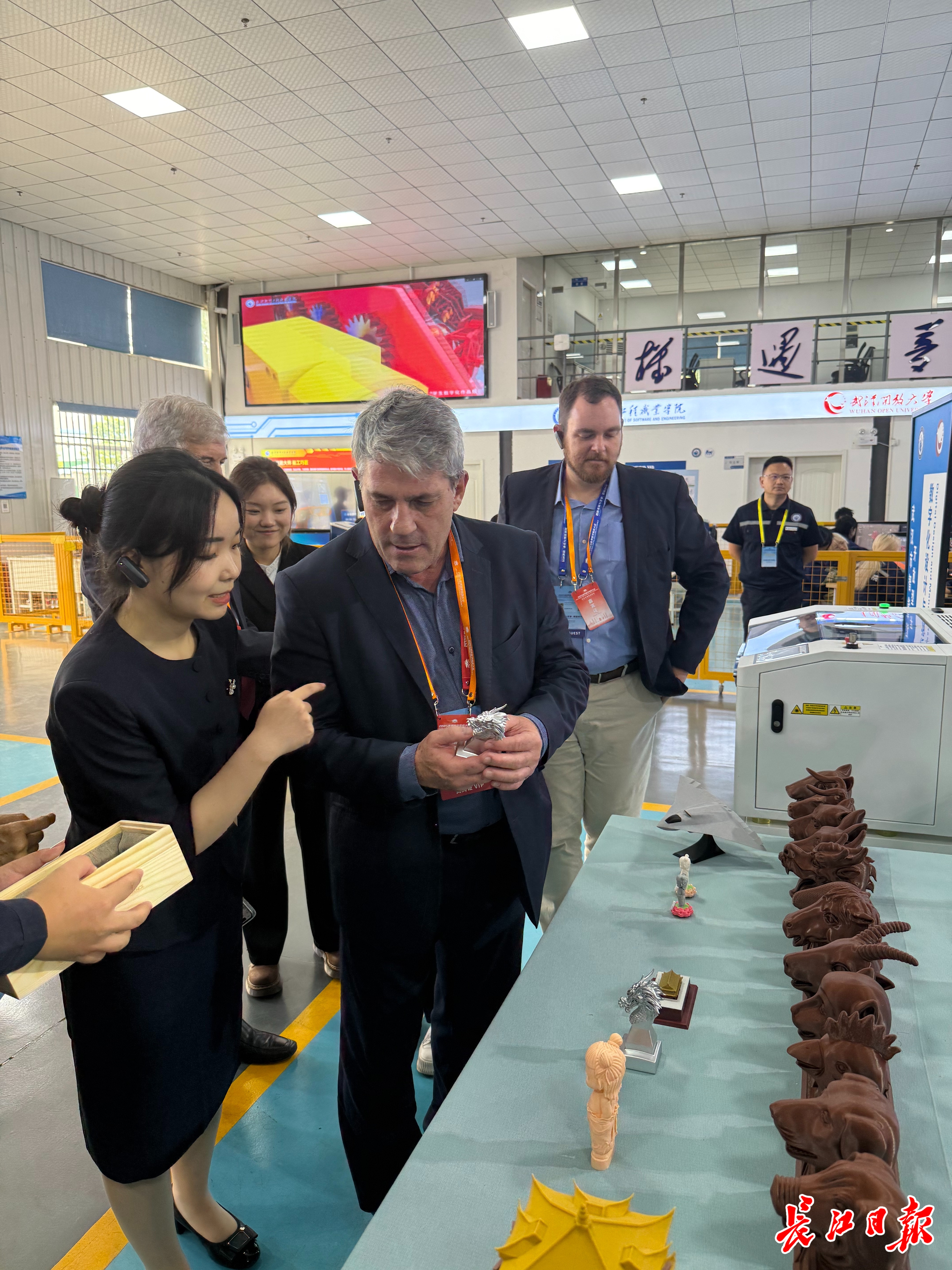 巴西职业教育副部长马塞洛·布雷加尼奥利一行来到武汉软件工程职业学院参观。记者陈晓彤 摄