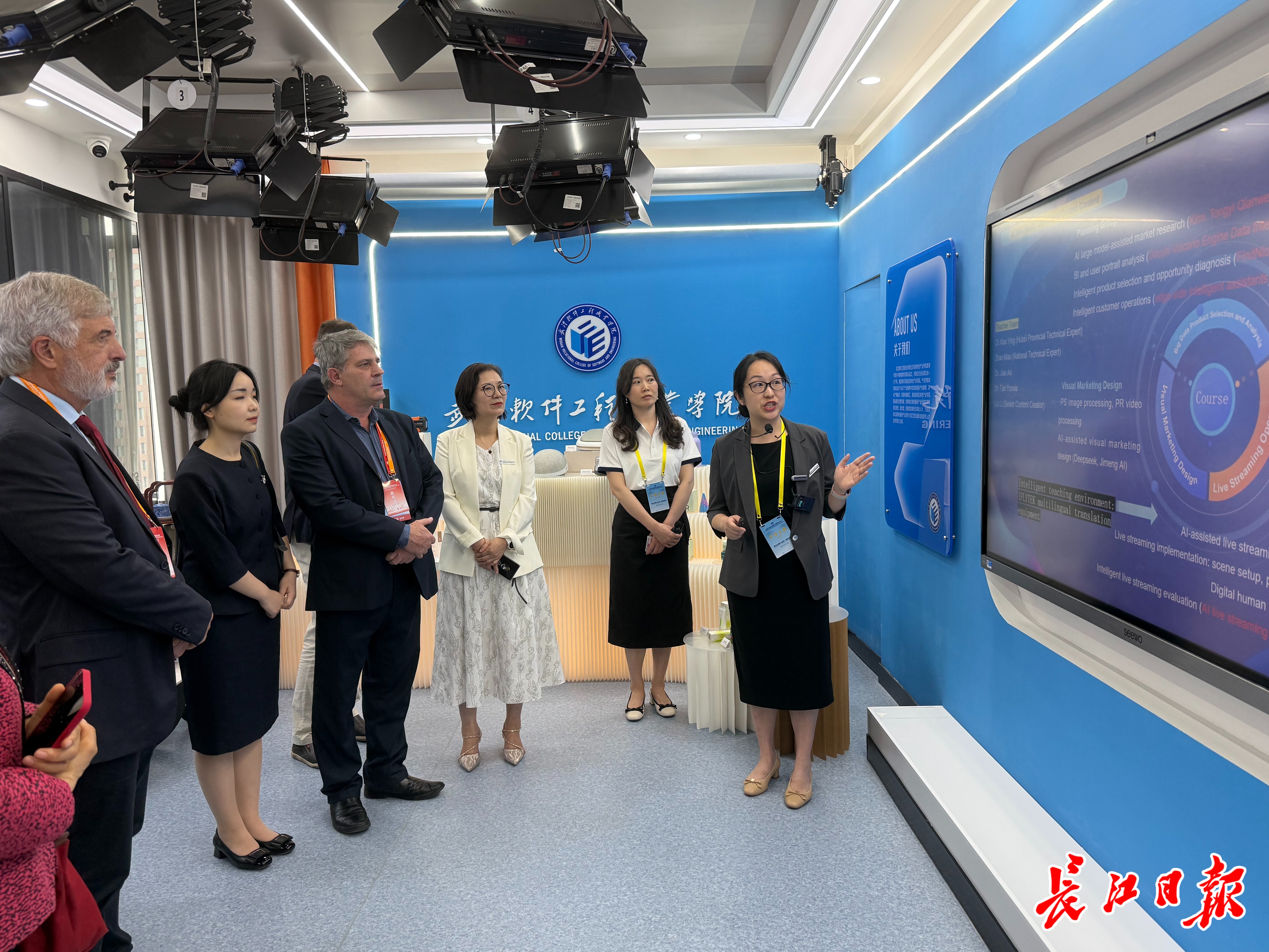 长江日报大武汉客户端5月14日讯(记者陈晓彤)5月14日上午,巴西职业教育副部长马塞洛·布雷加尼奥利一行来到2025世界数字教育大会现场观摩点之一、武汉软件工程职业学院参观。
