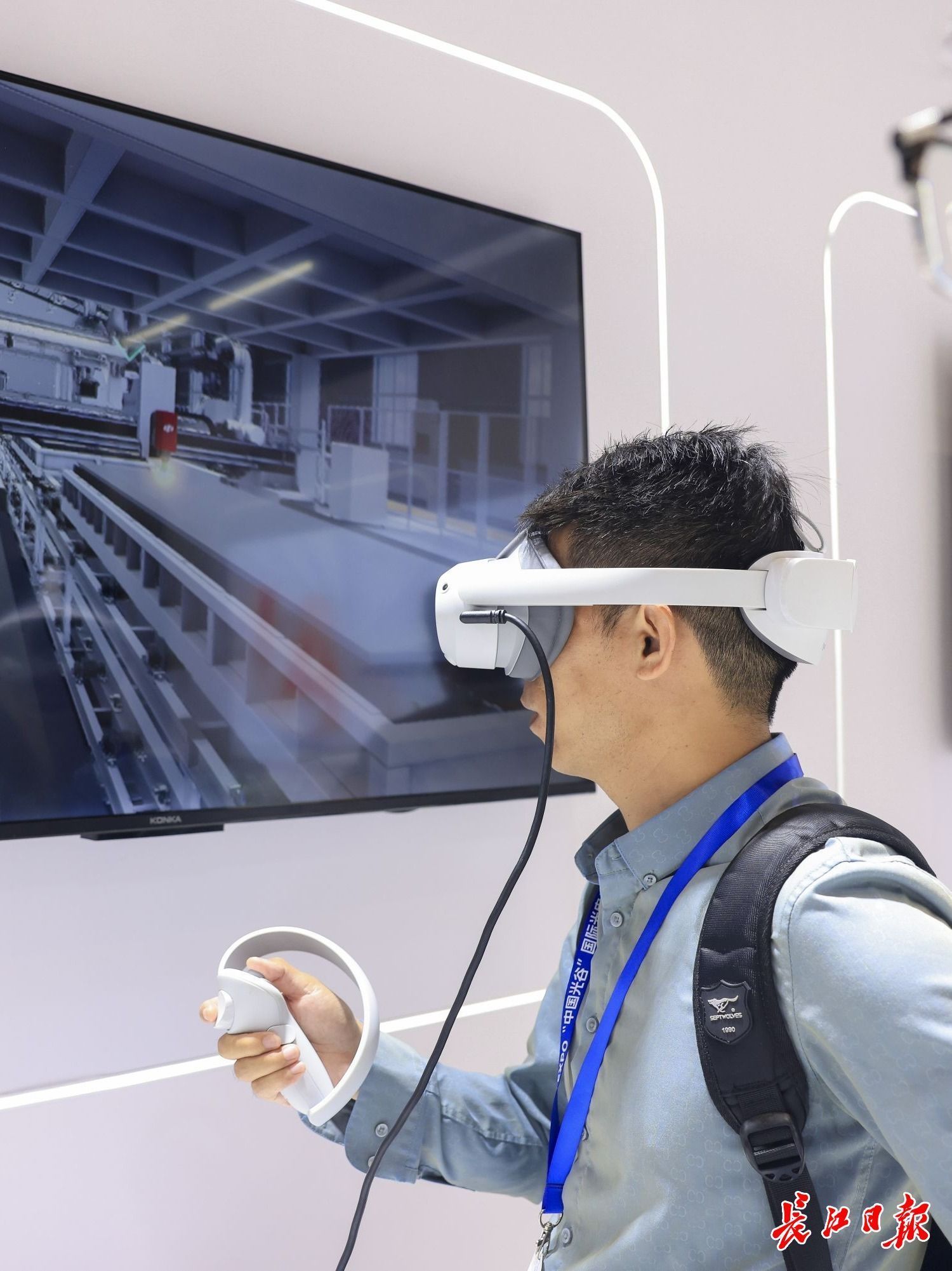 第二十届光博会华工科技展位,观众体验vr操作激光加工装备。记者 胡冬冬 摄