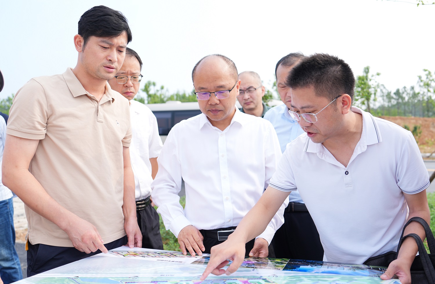 6月12日,市委书记何洪涛带队调研网球数智产业园项目选址工作。市委常委、常务副市长丁呈呈,副市长张琼慧、李伟、牛大臣参加调研。