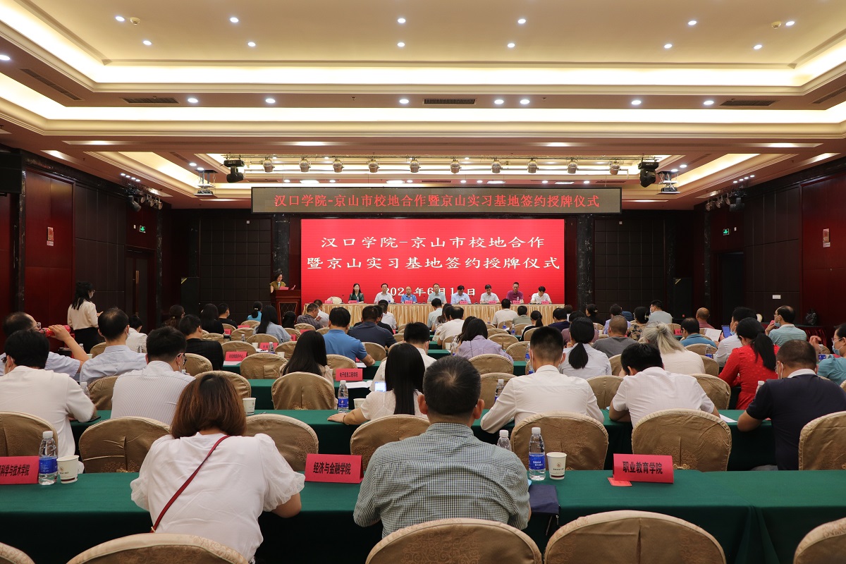 6月10日,汉口学院、京山市校地合作暨京山实习基地签约授牌仪式在豪威酒店举行,汉口学院与62个单位现场进行了实习基地签约并授牌。市委书记张勇到会祝贺并见证签约和授牌。汉口学院董事长罗爱平出席仪式并讲话