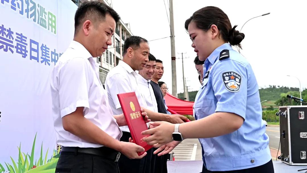 为了持续深化青少年毒品预防宣传教育工作,市禁毒委注重发挥青年先锋力量,全市青年干部纷纷踊跃参与其中。在场领导为在全省“防范青少年麻精类药品等成瘾性物质滥用”短视频征集活动获奖民警和在全省“一堂禁毒课”评选活动中获奖教师颁奖。