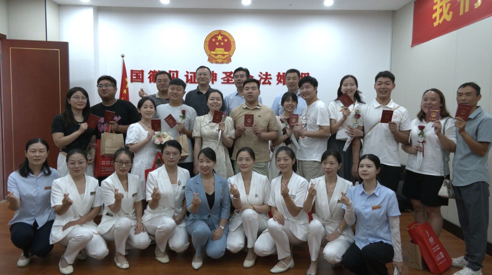 8月10日,市民政局婚姻登记处举行“我们的节日·七夕”2024年集体婚礼文明实践活动。来自各行业的10余对新人在现场嘉宾和亲朋好友的见证下喜结连理。活动上,出席领导及嘉宾为新人们颁发结婚证和纪念品,新