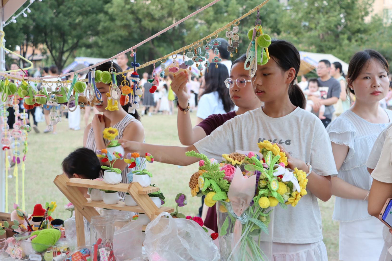 活动当晚,文峰公园内热闹非凡,夏夜的微风中洋溢着欢乐与激情。2025年京山市网球夏季联赛如火如荼地进行,选手们在球场上挥汗如雨,精湛的球技赢得观众们阵阵喝彩;与此同时,乐动仲夏音乐节在一旁奏响悠扬旋律,共同点燃夏夜热情。活动现场还设置了20多个摊位,涵盖餐饮、非遗、文创及景区景点等,吸引众多市民参与。据统计,当晚参与市民超过2万人,销售额达到20余万元,线上同步直播观看人数近5000人,曝光人次达3.5万。