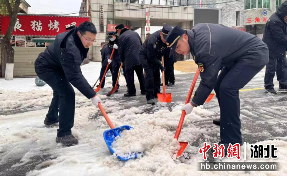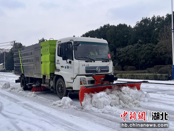中新网湖北新闻2月5日电 (陈珂宇)2月2日至4日,京山首场瑞雪如约而至。该市城管执法局组织环卫、园林、执法大队等城市管理战线的工作人员撒盐除雪,昼夜奋战铲雪除冰第一线。