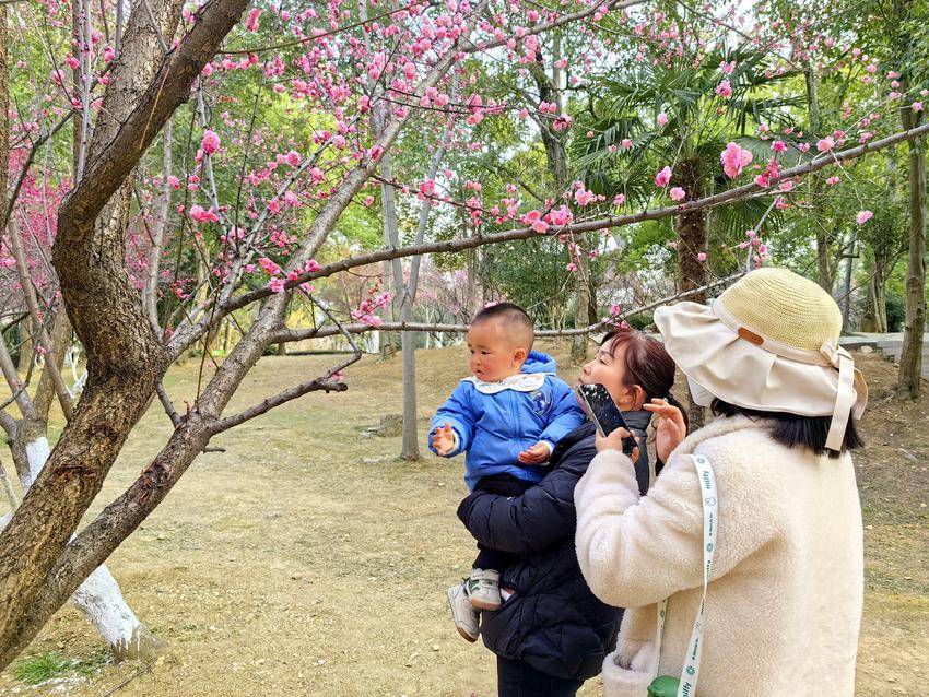 不少市民被美景吸引,纷纷来到梅花树下,或驻足观赏,或拍照留念。