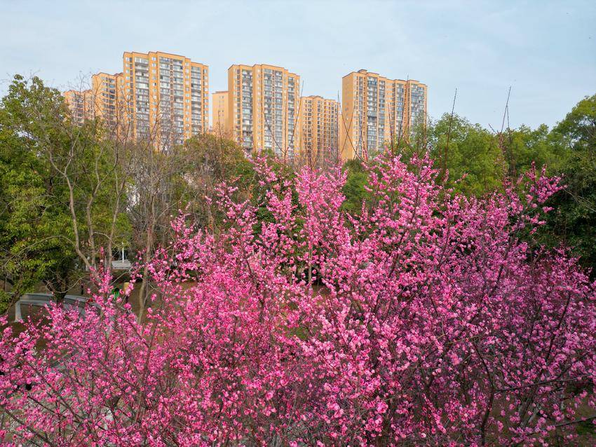2月26日,文峰公园梅花竞相绽放,为初春的京山增添了一抹绚丽的色彩。不少网球爱好者在这里挥拍,赏花与运动在这里交织成一幅幅生机勃勃的画面。