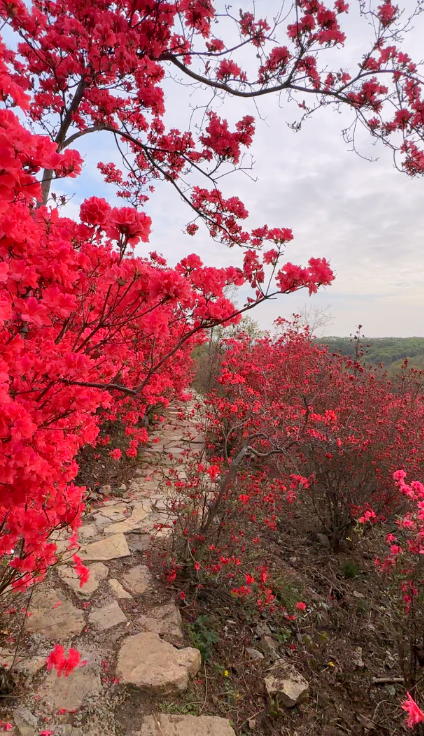 潼泉湖的杜鹃花进入了盛花期,漫山遍野披上热烈的红色,惊艳游人眼眸。