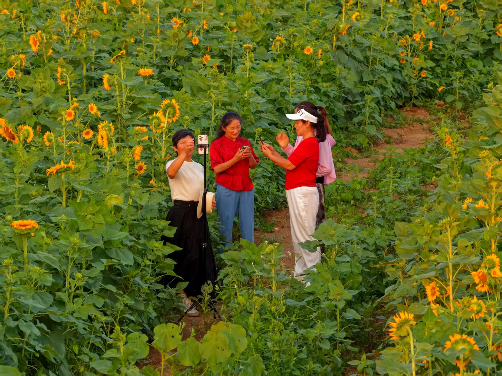 进入6月中旬以来,这里的向日葵陆续开花,竞相绽放,吸引了市民游客前来游玩、观赏、拍照打卡,尽享田园风光。(肖朕天)