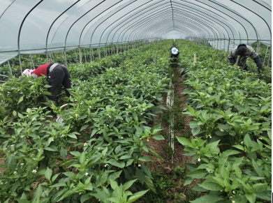 目前,王浩的家庭农场共流转80亩土地,建了24个大棚,他通过与湖北洪山实验室合作,种植新品薄皮青椒、水果玉米、吊冬瓜,俏销市场。