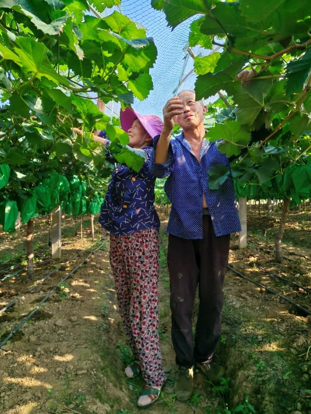 脱贫户涂汉生、黄佳丽两口子最初在葡萄园里务工,如今他们流转13亩地,自己当老板种起了葡萄。
