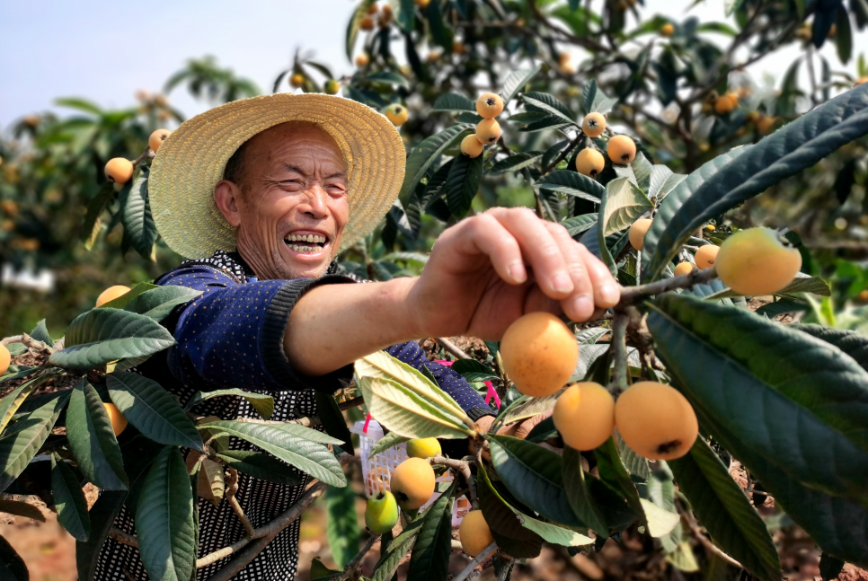 湖北京山孙桥镇花苑台村的农户采摘枇杷