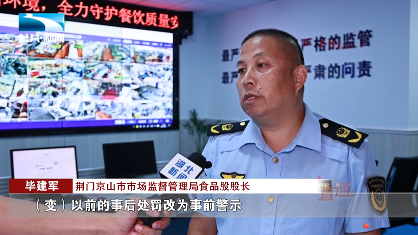 荆门京山市市场监督管理局食品股股长 毕建军:“让我们以前监管从现场监管转变为后台监管,通过监控画面及时发现存在的问题,变以前的事后处罚改为事前警示,不断地提升我们食品安全的监管水平。”