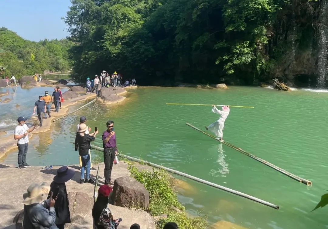 “五一”小长假,京山绿林山风景区游客量单日破万,新增的旅游观赏项目,吸引了不少游客前来观光打卡,游客们充分享受山水带来的新鲜空气和人间美景。美人谷是绿林山风景区核心景点之一,位于万福大峡谷中,由一系列