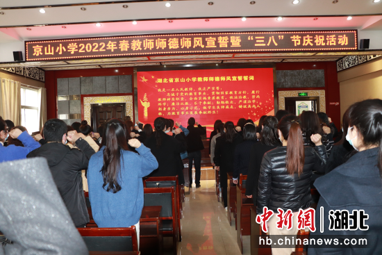 中新网湖北新闻3月18日电 (杜炎炎 黄小明)“廉洁从教,乐于奉献;勤勉敬业,严谨治学;躬身亲为,以身示范,做学生的良师益友……”近日,京山市教育组织百余名教师在京山小学礼堂开展师德师风宣誓活动,