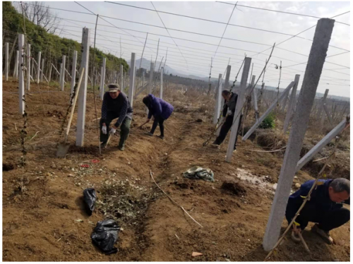 中新网湖北新闻2月26日电 (李连烽)连日来,京山市曹武镇向畈村葡萄基地里,近百名农户正在剪枝、培土、施肥、扎网,一派繁忙景象。 向畈村位于京山市曹武镇北面,是京山市6个深度贫困村之一。近年来,