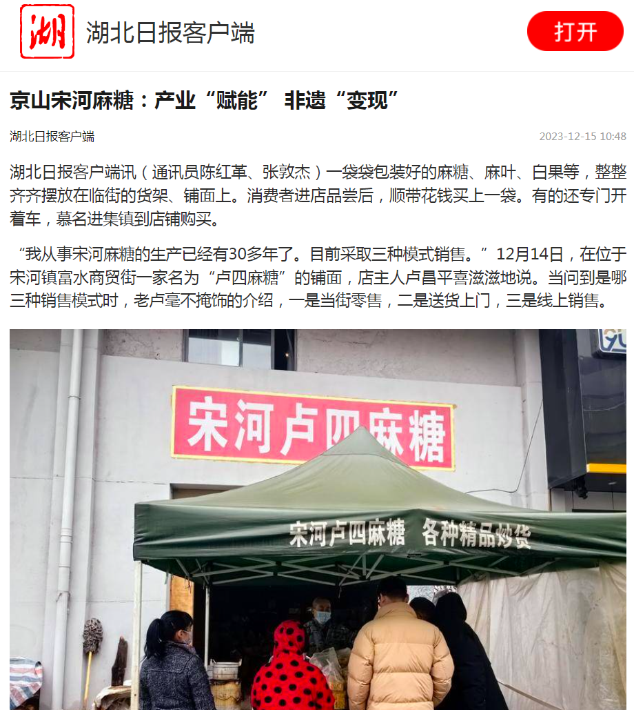 | 【湖北日报】京山宋河麻糖:产业“赋能” 非遗“变现” |