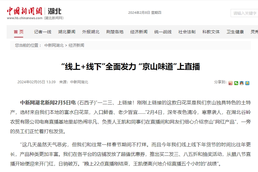| 【中新网】“线上 线下”全面发力 “京山味道”上直播 |