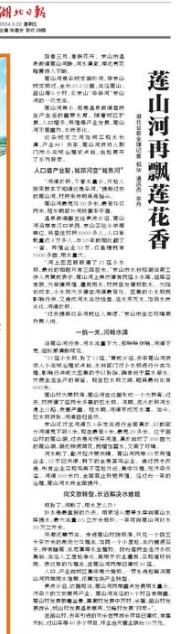 湖北日报全媒记者 祝华 通讯员 余舟阳春三月,春暖花开。京山市温泉街道莲山河畔,河水清澈,岸边赏花踏青游人不断。莲山河是条城郊袖珍河,穿京山城郊而过,全长21.2公里,流经莲山、窑山等5个村,系京山“