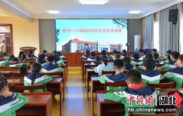 敖凯 摄 中新网湖北新闻5月10日电 (周雅婷)“同学们,你们知道国家反诈中心app吗?”近日,京山市人民检察院以网络安全普法为主题,组织检察官以“法治副校长”的身份走进新市一小,向学生开展网络安全