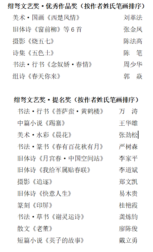 | 关于第八届“绀弩文艺奖”评审结果的公 示 |