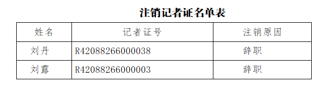 以下人员已经从我中心离职,不再从事新闻采编工作,从即日起,其所持本中心新闻记者证予以注销。今后,他们所从事的一切活动,均与本中心无关,特此声明。京山市融媒体中心