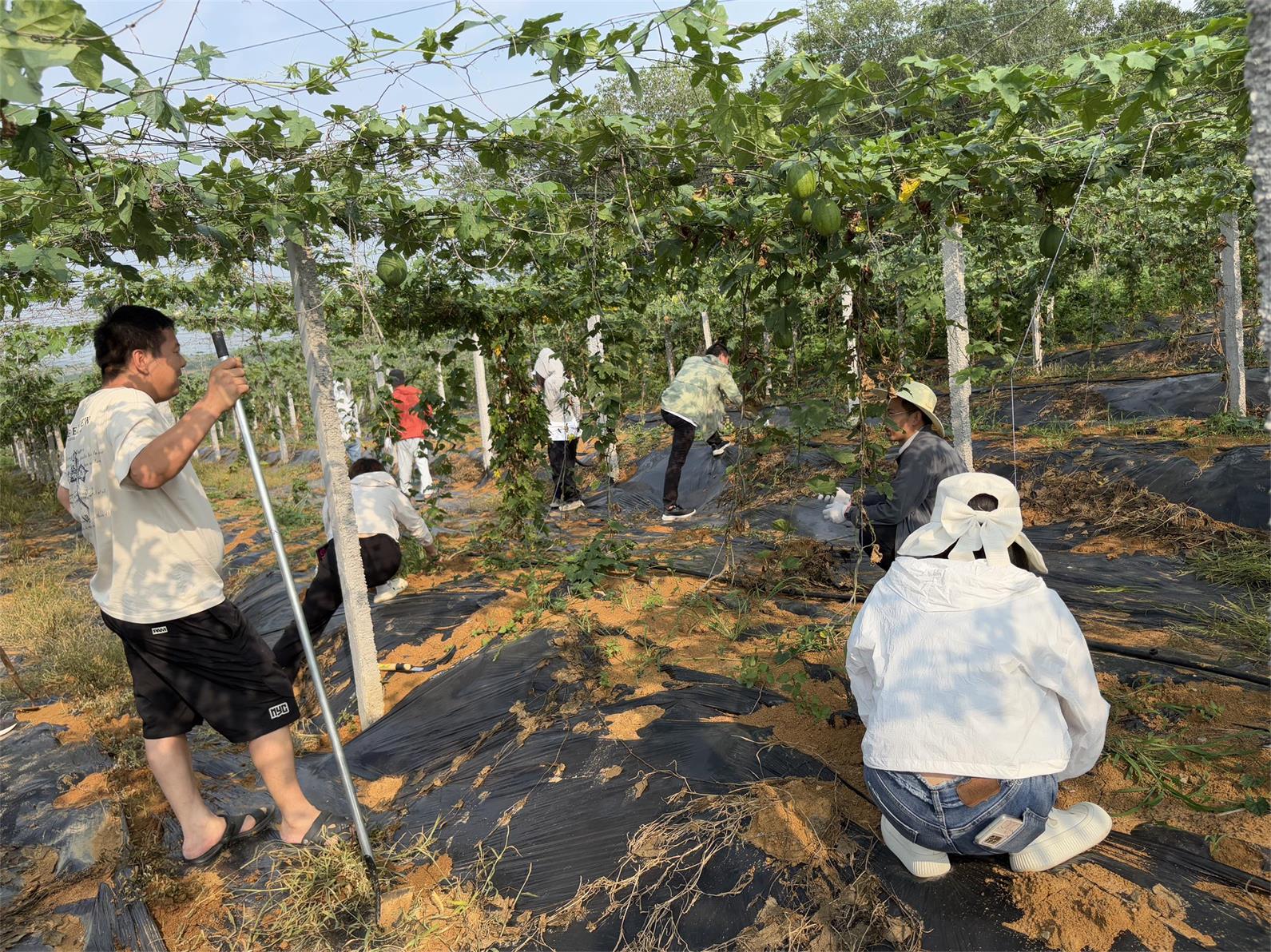 6月12日,曹武镇组织全镇35岁以下的青年干部前往花台山瓜蒌基地,开展农事除草活动。
