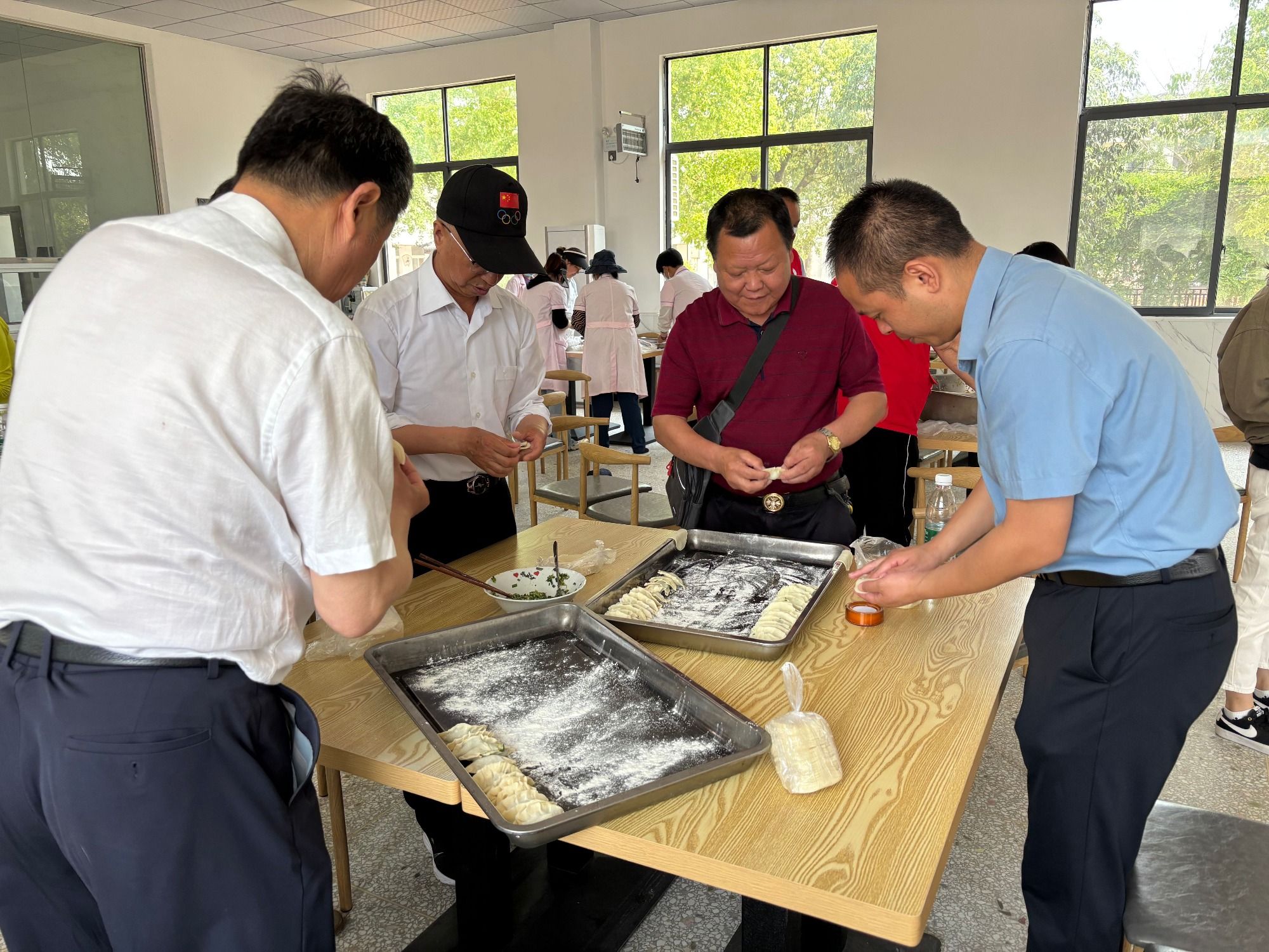 义诊结束后,慰问团队与老人们共同参与“幸福饺子宴”活动。市民政局、市老年协会、罗店镇相关负责人与志愿者围坐一堂,一边包饺子,一边倾听老人心声。