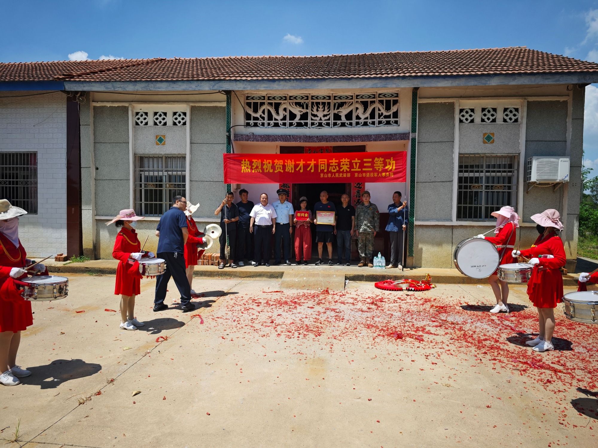 “谢才才同志荣立三等功,恭喜你们!”罗店镇武装部工作人员宣读了喜报,并将喜报递交到其家人手中。每一张立功喜报的背后,都凝结着军人的英勇拼搏和军属的无私奉献。