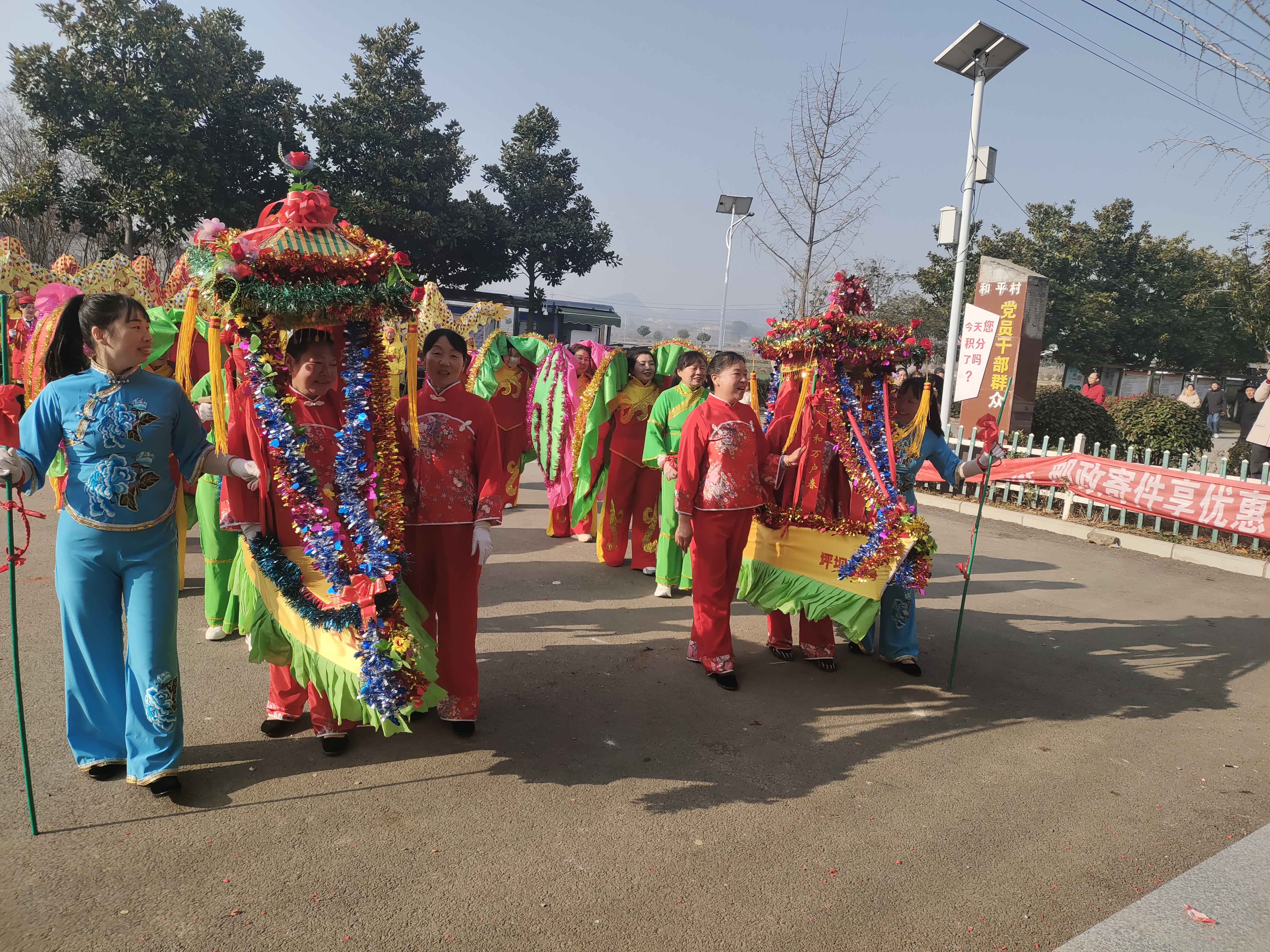 表演人员及工作人员共计100余人,表演类型丰富多彩,有传统民俗表演龙灯、军鼓、彩莲船、舞河蚌等,均深受村民喜爱。表演按照既定路线,由坪坝镇政府出发,乘坐大巴到和平村,为村民带去节日的喜庆。沿街挤满了观看的人员,还有不少来自三阳镇、王艺贞镇的村民。