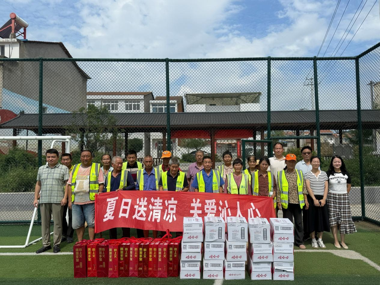 7月21日上午,坪坝镇工会联合镇党建办、镇团委在镇文体广场开展“夏日送清凉”活动,为坚守在一线的环卫工人送去防暑降温物资,用实际行动传递关怀与敬意。