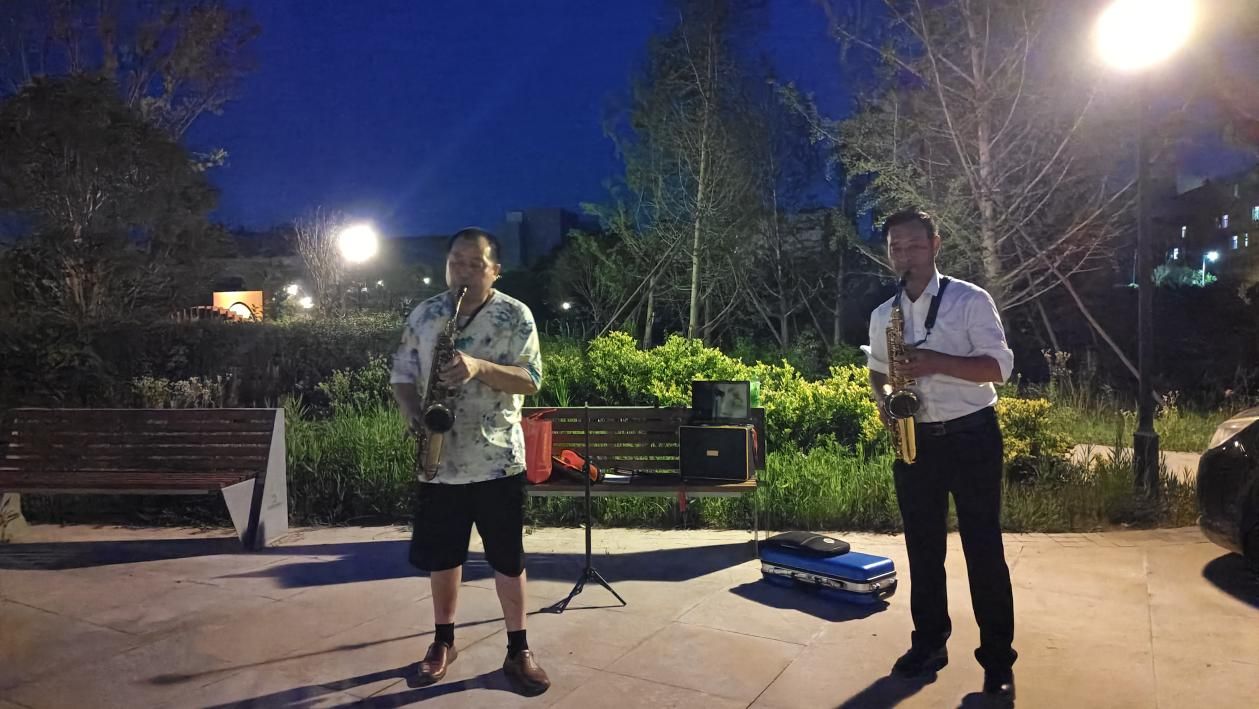 近日,走进钱场镇东河公园,悠扬的萨克斯乐声穿透暮色。步道上,三三两两的居民或慢跑健身,或推着婴儿车漫步,路灯将人影拉得悠长,勾勒出夏夜的惬意画卷。
