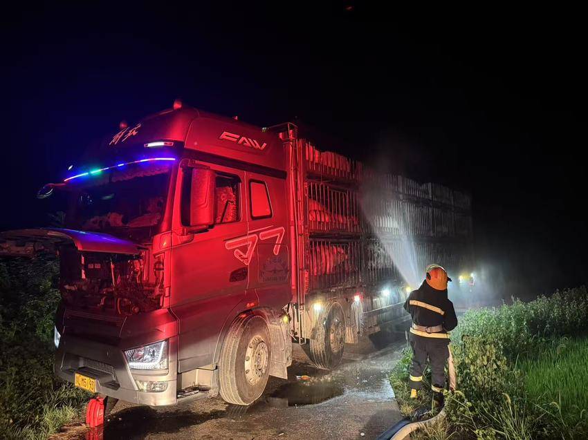 见状,消防救援人员立即架设一支水枪,对车厢进行全方位喷淋降温,经过20分钟的紧急降温处理,生猪体温逐渐下降,成功为群众减少了经济损失。(张丞 杨成)