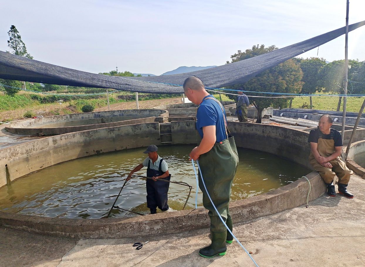 当天,专业合作社空气中弥漫着淡淡的水腥味,池塘边、孵化池内都是一片热火朝天的工作景象。