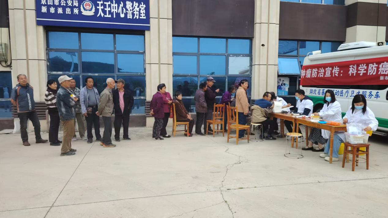 4月25日上午,在新市街道陈八字村,新市卫生院医疗团队全程保障,针对中老年人常见疾病进行检查,将优质的医疗资源送到群众“家门口”。