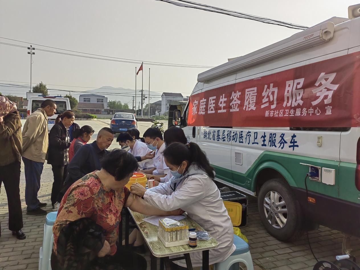 近日,新市社区卫生服务中心组织家庭医生签约团队走进了新市街道丁家塝村、鄢河村、高岭村,开展“家庭医生签约 免费健康体检”一体化服务活动