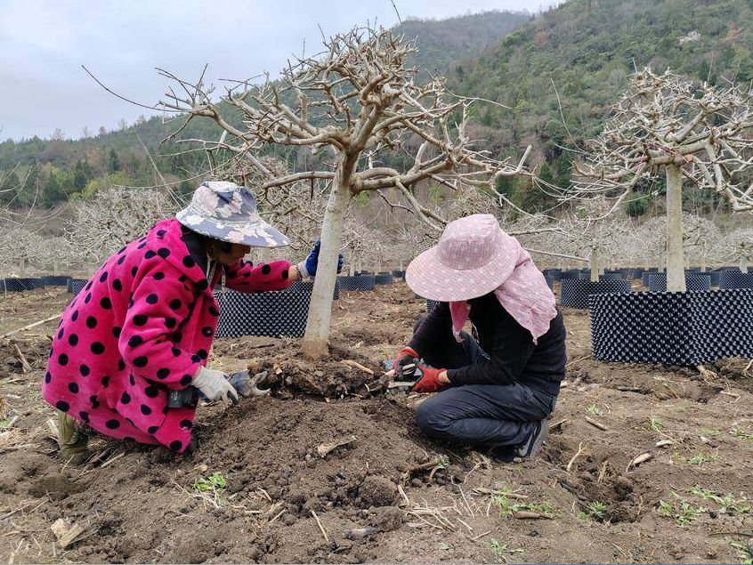 3月19日,在新市街道龙泉山村,几十位村民正在对对节白蜡盆景进行修剪、培育。与此同时,造型各异的盆景被吊运到运输车上准备送往外地售卖,现场一派繁忙景象。