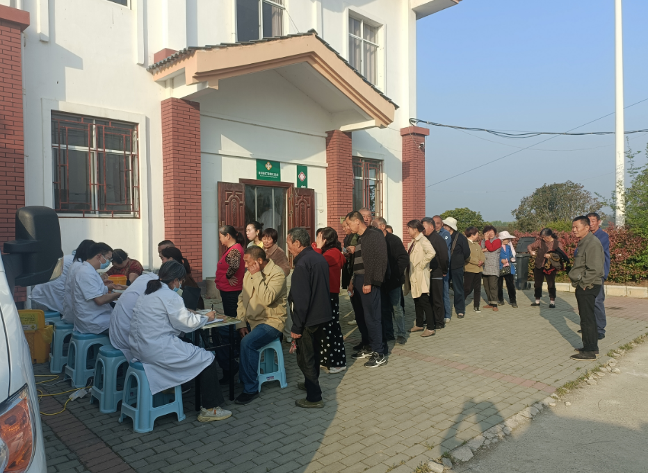 4月8日上午,新市街道丁家塝村为65岁以上老年人进行免费健康体检。