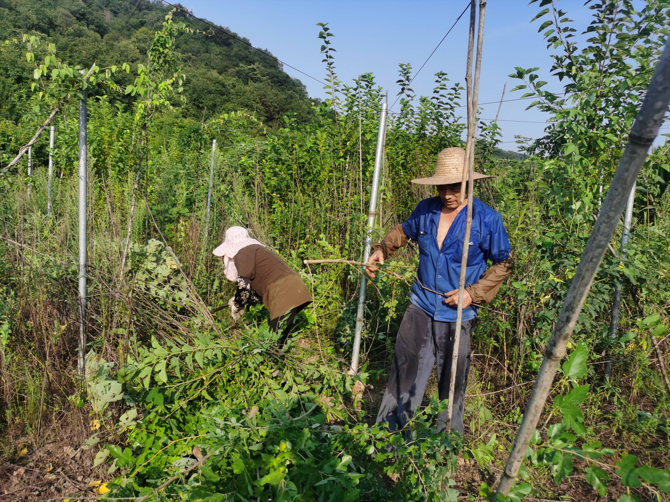 8月5日,永兴街道杨河村组织农户为“八月炸”种植园整枝除杂、绑苗正杆。