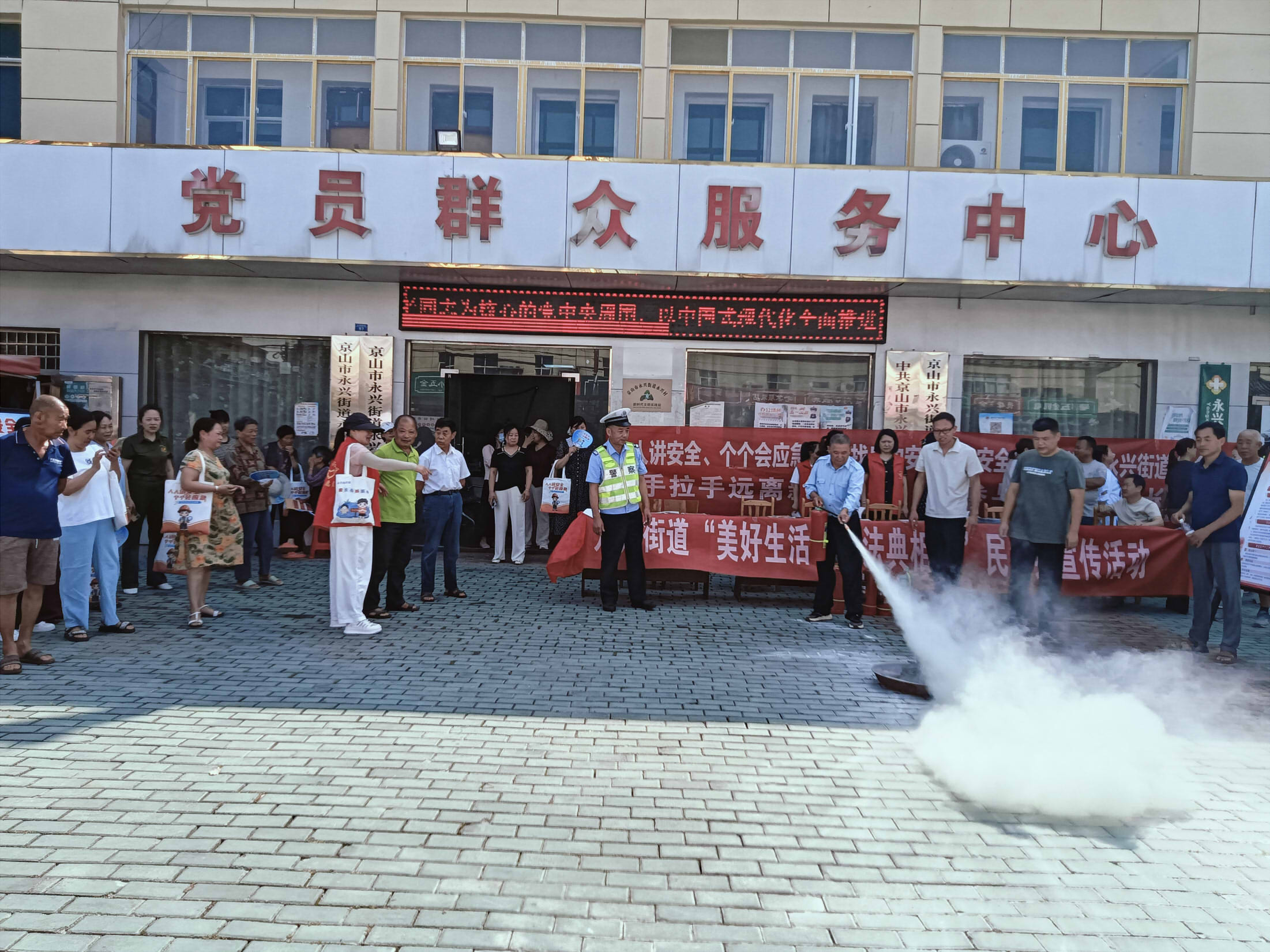 6月16日,永兴街道安办联合派出所、市场监管所、司法所、戒毒中心、街道新时代文明实践所和永兴街社区,在永兴村开展安全知识宣讲咨询演练。