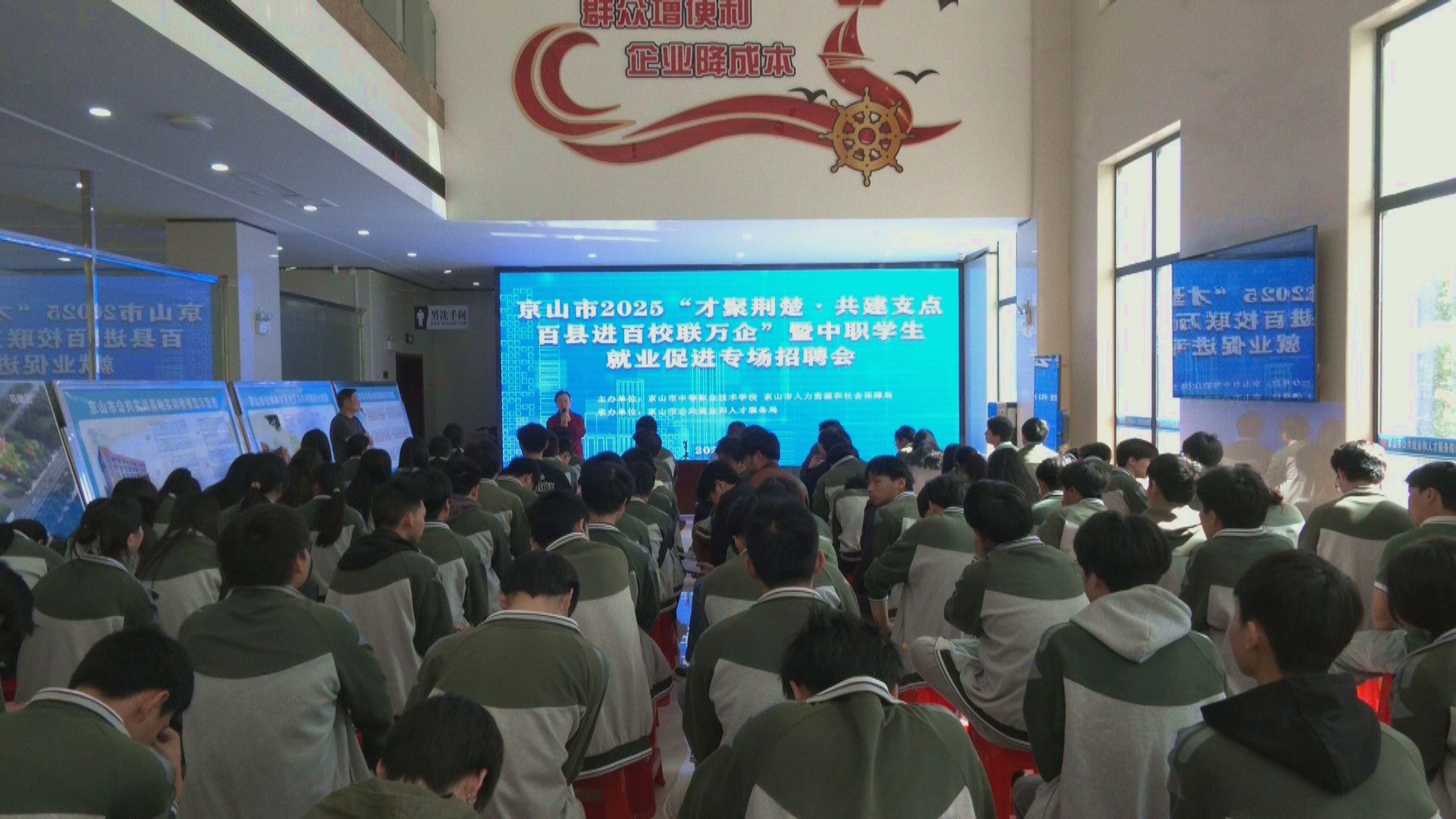 4月14日,京山市2025年“才聚荆楚·共建支点——百县进百校联万企”暨中职学生就业促进专场招聘会在市就业服务中心举行,来自市中等职业技术学校的近100名学生参加活动。