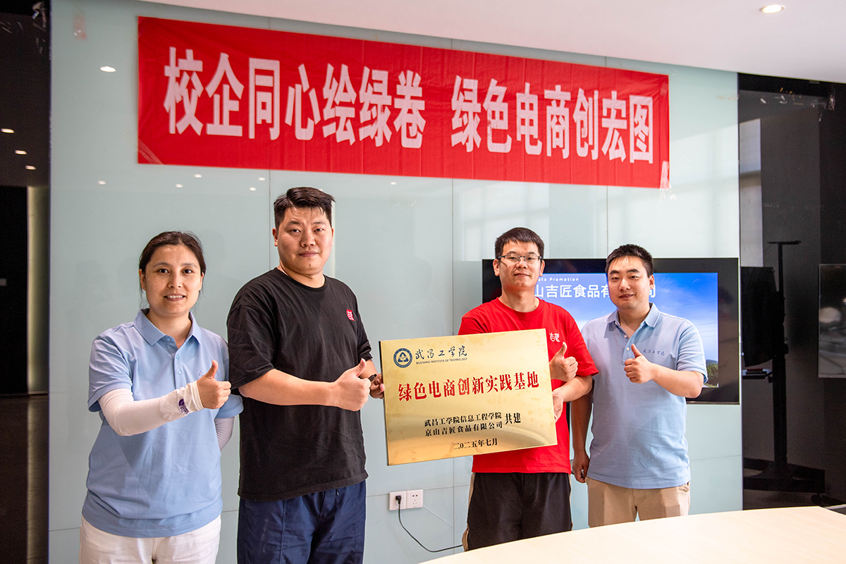 在京山市电子商务中心,校企双方举行实践基地授牌仪式,随后,双方围绕“绿色电商赋能食品产业”主题开展座谈。师生结合参观中观察到的智能管理系统应用、低碳生产流程等亮点,与企业就如何进一步优化绿色供应链、推广环保包装材料、提升电商物流能效等议题展开探讨。企业代表分享了在数字化管理中降低运营成本、减少能源消耗的经验,双方还就搭建绿色电商数据监测平台、开发低碳产品认证体系等创新方向达成初步共识。