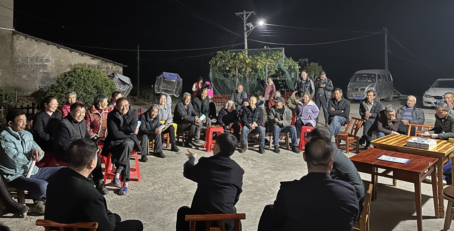 12月2日晚,在雁门口镇常家山村,村民们与京山市法学会青年普法志愿者围坐一起愉快交流,欢笑声不绝于耳。