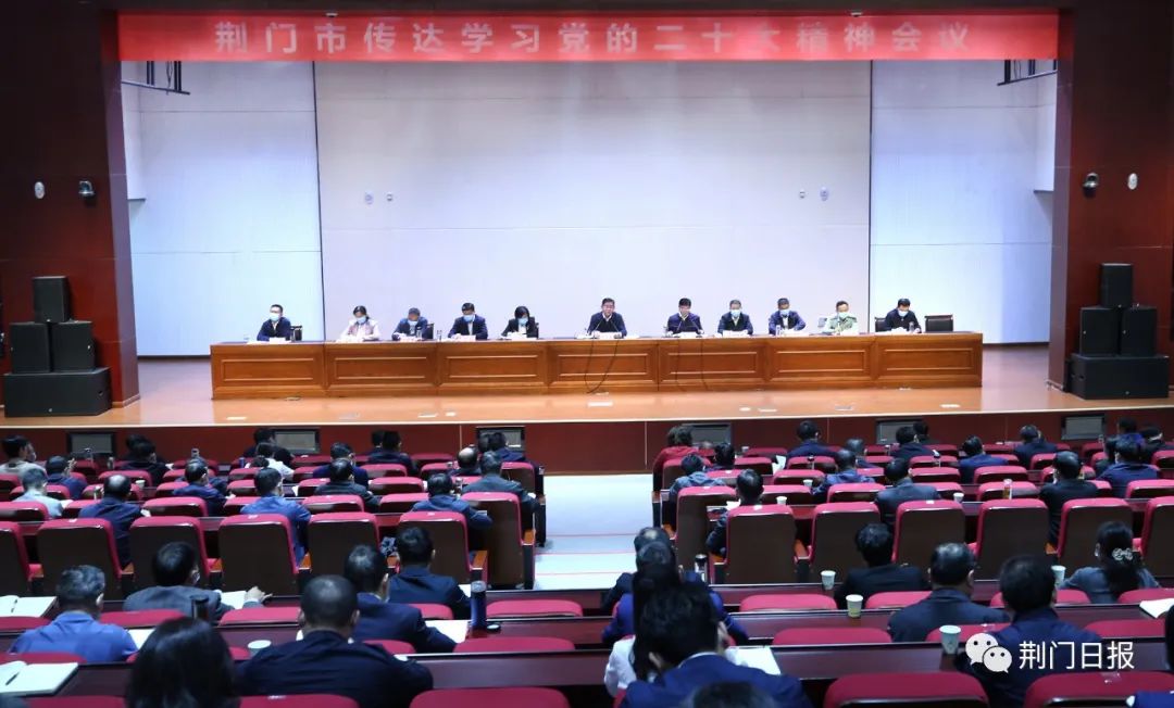 | 10月25日,荆门市传达学习党的二十大精神暨市委理论学习中心组(扩大)集中学习会议在荆门剧院举行。市委书记胡亚波主持会议并讲话。他强调,学习好、宣传好、贯彻好党的二十大精神,是当前和今后一个时期的首要 |