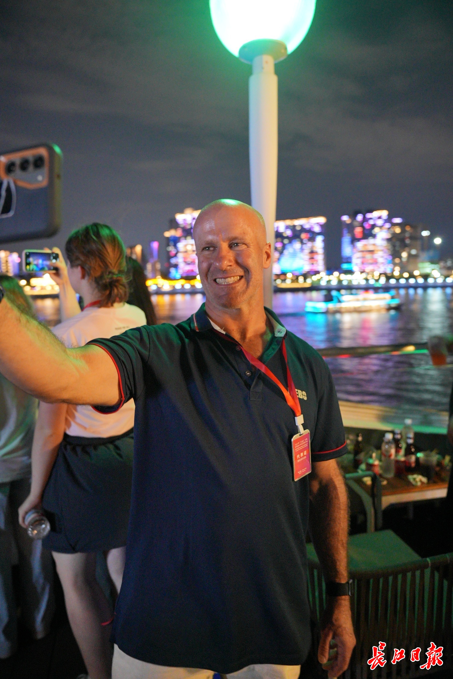 来自美国西雅图西区高中高三学生内森·博默说:“这不是我第一次来中国,前几年去过北京、昆明,不过武汉给我的感觉很不一样,这个城市很有魅力。”他笑着比画,“江边这些有历史特色的建筑也很吸引我,和灯光相映特别美”。