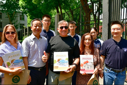 参观结束前,格林对学生们的科技成就和国际视野十分赞赏,他拍了拍一名高中生的肩膀:“你在这边学习一定很开心,很满足。”
